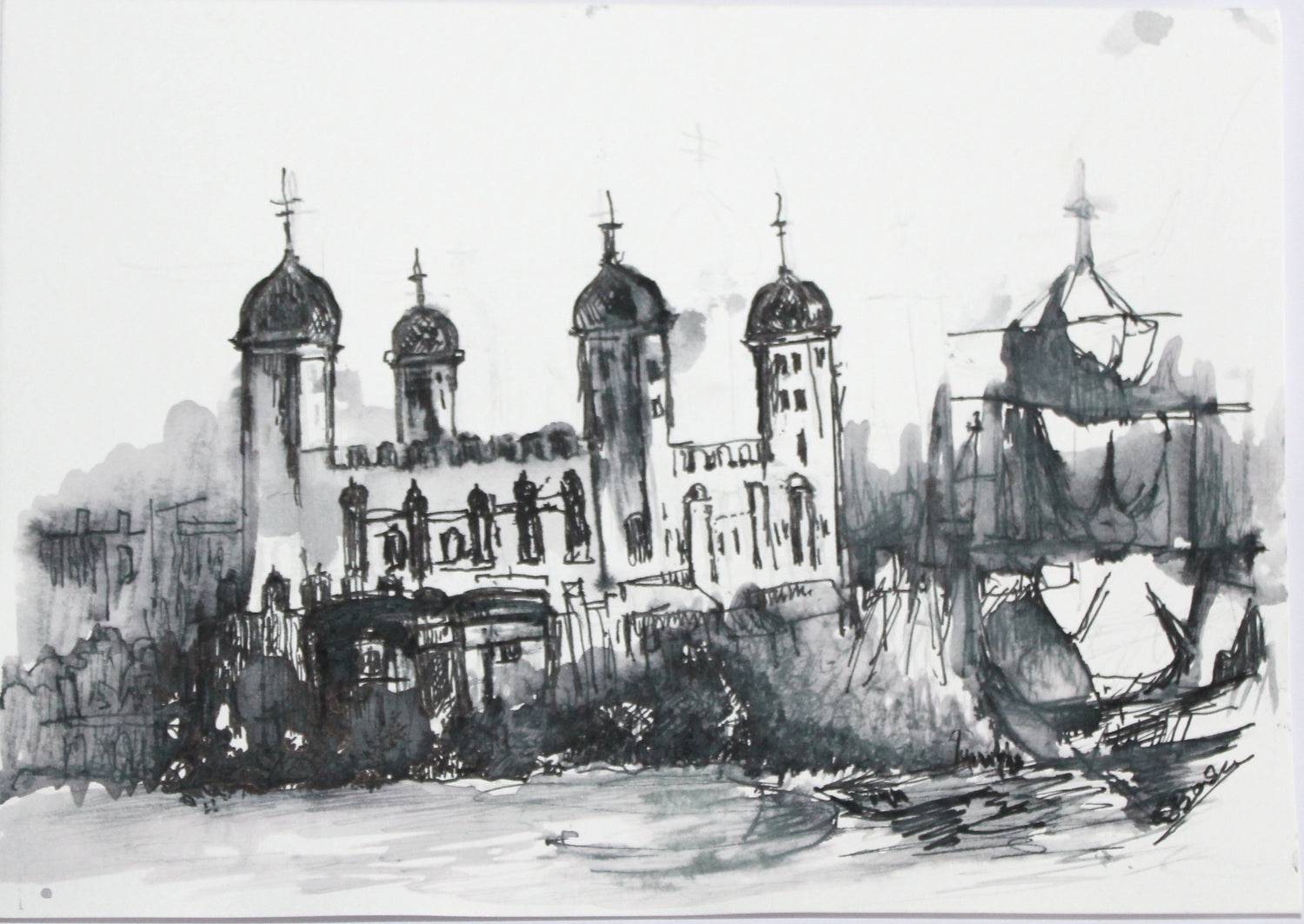 Original Pen and Ink Architectural Drawing – Fine Art Wall Decor – Black and White Artwork (SB)